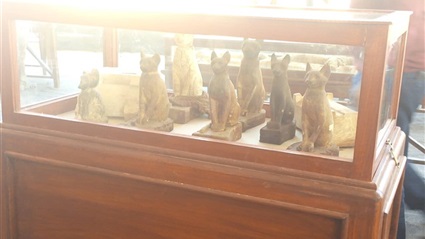 وأضاف أنه تم عمل اختبار ومومياء لأسد صغير يبلغ من العمر من 6 إلى 8 أشهر، و5 مومياوات أسود في حفرة بها 25 صندوق بها مومياوات قطط وأسود صغيرة وقصور وتماثيل خشبية صغيرة عليها بقايا ذهب ونقوش مومياوات كبير، بالإضافة إلى تماثيل برونزية للإله أزوريس.