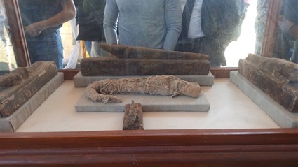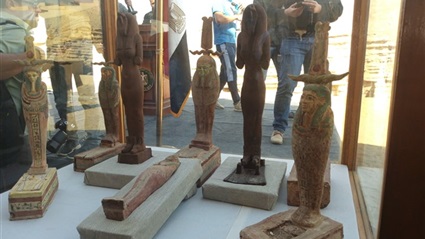 يذكر أنه تم رصد القطع الأثرية في فتارين مغلقة ووضعها في الأمام وسط عدد كبير من العمال والمرممين الاثريين ويوجد عدد من الحيوانات المحنطة وقطط بأحجام مختلفة تصل إلى متر وجعران ضخم بالإضافة إلى عدد من التماثيل الأخرى لبعض الحيوانات التي تظهر في حالة جيدة.