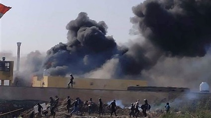 أفادت وكالة "سبوتنيك" في العراق، نقلا عن شهود عيان، ومصادر أمنية، اليوم الخميس، أن محتجين غاضبين، أضرموا النار، بمقرين للقوات التي شاركت في استخدام الرصاص الحي لتفريق المتظاهرين، في محافظة ذي قار، جنوبي العراق.