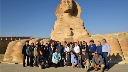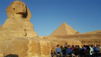 قابل عالم الآثار المصرية الدكتور زاهي حواس وفد بريطاني رفيع المستوى، اليوم الثلاثاء، أمام تمثال ابو الهول؛ من بينهم مثقفين وادباء وأساتذة في الجامعات وشخصيات عامة.