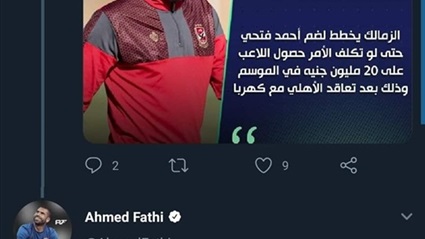 قام أحمد فتحي لاعب الفريق الأول بالنادي الأهلي، بالسخرية من الانباء التي تتردد حول إمكانية تفاوض الزمالك معه من أجل الحصول على خدماته خلال فترة الانتقالات الشتوية في يناير المقبل.
