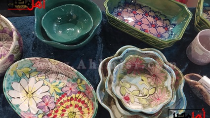 قالت نيفين رشدي، إنها تعمل في صناعة الخزف، والفخار، برفقة صديقتها فاطمة العلالي، مشيرةً إلى أن معالجتهما لتلك المصنوعات مختلفة بشكل كبير عن باقي الطرق، حيث تقومان بتشكيله، وحرقه، ثم ترسمان عليه باستخدام ألوان صحية، وتحرقانه مرة أخرى على درجة حرارة 1000، وبهذا يمكن لربة المنزل استخدامه داخل الفرن.