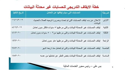 كما سيتم وقف العمل بجميع الحسابات البريدية غير محدثة البيانات بغض النظر عن تعاملها من عدمه وذلك يوم 1 أغسطس القادم.