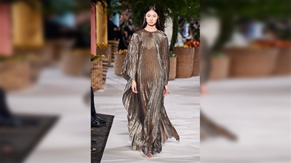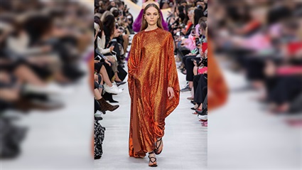 فالنتينو- تضمّنت مجموعة دار Valentino من الأزياء الجاهزة لربيع 2020 إطلالات مميّزة من بينها هذا الثوب المستوحى من تصميم العباية والذي تمّ تنفيذه بخامة الباييت وبلون ناريّ مشرق.
