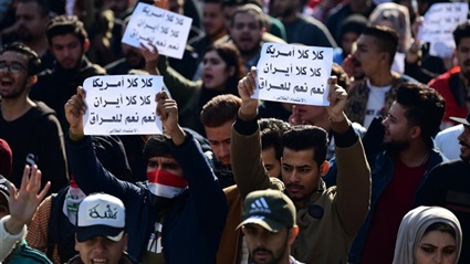 طلاب عراقيون يحتجون ضد أمريكا وإيران في بغداد اليوم