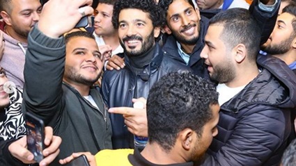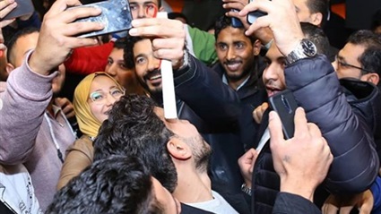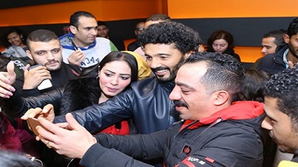 وظهر الفنان خالد النبوي في السينما وهو يلتقط الصور التذكارية مع جمهوره من الشباب والفتيات، وأحاطوه بأعداد كبيرة معبرين عن حبهم له.