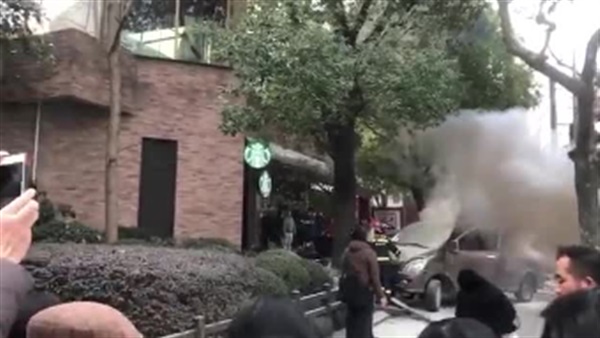 ومن جهتها نشرت وسائل إعلام حكومية صورا ظهرت فيها شاحنة ركاب صغيرة تشتعل النيران بداخلها وقد استقرت على رصيف عند مدخل مقهى "ستاربكس".