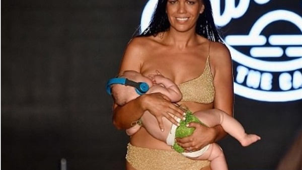 عارضة أزياء ترضع ابنتها خلال خروجها للجمهور على المنصة "فيديو"