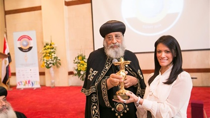 وقد أهدى قداسة البابا تواضروس الدكتورة رانيا المشاط وزيرة السياحة درع تكريم يحمل شعار الحملة الفرح JOY ، مقدما الشكر للوزيرة على الحضور الكريم، ومشيرا إلى أهمية انعقاد هذا المؤتمر كل عام. وأعربت الوزيرة عن سعادتها بهذا التكريم، مشيرة الى أن الوزارة ستقوم باستخدام هذا الشعار المميز في حملات الوزارة القادمة.