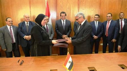 وقع البروتوكول الدكتور عباس منصور رئيس جامعة جنوب الوادي، والدكتور السيد الشرقاوي رئيس جامعة السويس، والدكتور عبدالرازق يوسف نائب رئيس جامعة كفر الشيخ لشئون التعليم والطلاب مع نيفين جامع الرئيس التنفيذي لجهاز تنمية المشروعات المتوسطة والصغيرة ومتناهية الصغر.
